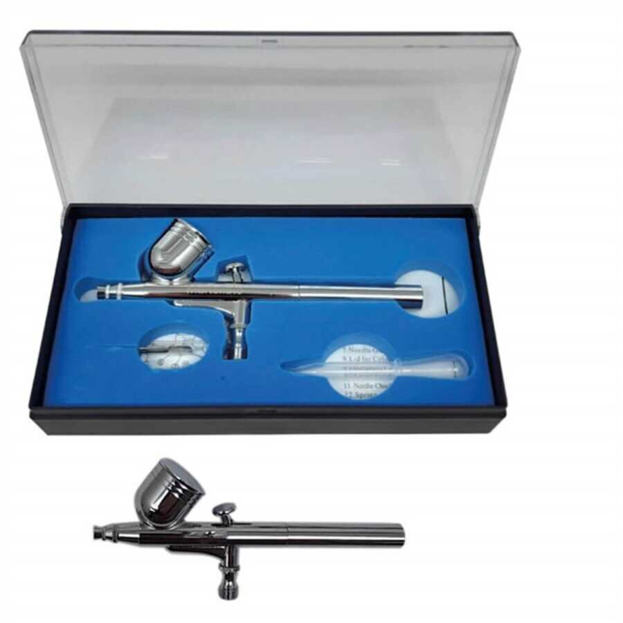 Özellikler:Durum: kutuda yeniÇift eylem tetik hava/sıvı kontrolüMeme çapı: 0.3mmSıvı kupasi: 7CCÇalışma basıncı: 15-50PSISprey desen: saç çizgisi 100mmUygulama alanı:İllüstrasyon, güzel/ticari sanat, fotoğraf rötuş, özel otomotiv, motosiklet grafikleri, çivi ve kozmetik, minyatürler, Taxidermy / Lures, modeller / RC'S/trenler, Hobi ve el sanatları ve pastacılık alanlarında kullanılır.Nasıl temizlenir:Sıvı kabını boşaltın. Bir fırça ile su veya çözücü kullanarak yıkayın.Temizlemek için sıvı: alkol, tiner, muz yağı kullanabilirsiniz.