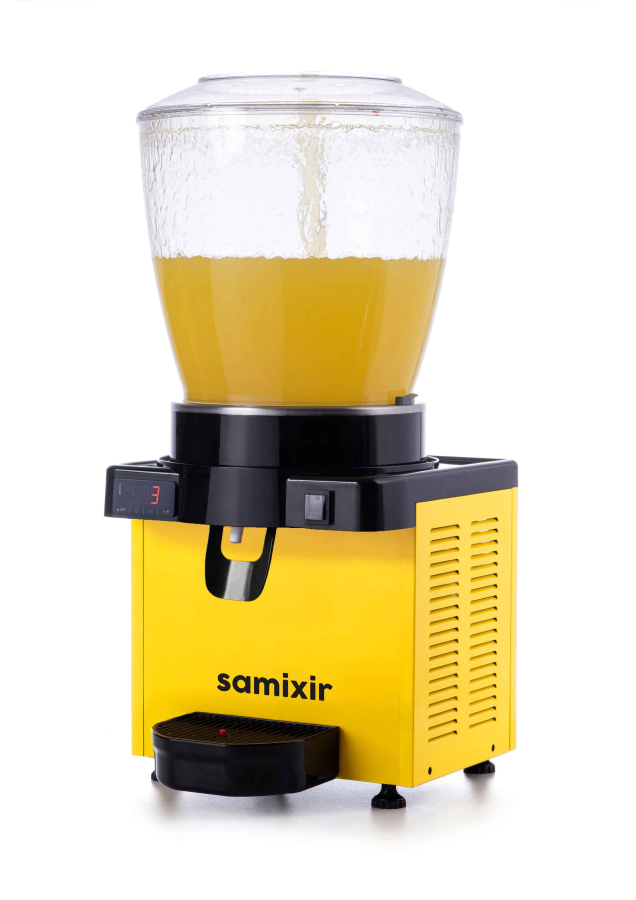 Panoramik S22 22 L panoramik, fıskiyeli soğuk içecek dispenseri Doğal parçacıksız meyve ve şalgam sularının soğutulması ve dağıtılması için tasarlanmış tezgah üstü soğuk içecek dispenseri  Manyetik fıskiyeli karıştırma sistemi sayesinde; özellikle parçacıksız meyve sularının, şalgamın soğutulması ve dağıtılması için tasarlanmış tezgah üstü dispenser. Geniş soğutma tabanı sayesinde içecekler daha hızlı ve son damlasına kadar eşit olarak soğur, Bu sayede klasik ürünlere göre %50’ye varan enerji tasarrufu sağlar. Pratik musluk sistemi; tek el kullanılarak rahatça içecek alabilmeyi sağlar. Geniş musluk hortumu hızlı dolum sağlar ve kolaylıkla sökülüp temizlenebilir. Manyetik fıskiye sistemi sayesinde hazne içinde bulunan içeceğin alt motor bölümüne sızma riski ortadan kalkar, bu sayede motorun ömrü uzar. Fıskiyenin eşit dağıtım özelliği sayesinde içecek azalsa bile iştah açıcı görsellik değişmez. Mükemmel temizlik ve hijyen için içecek ile temas eden tüm parçalara kolayca ulaşılır ve hızlı bir şekilde temizlenebilir. Polikarbonat hazne darbeye dayanıklı ve gıda kullanımına uygundur. Küçük ve orta ölçekli işletmeler için uygun çözümdür. Parçacıklı içeceklere uygun değildir. Damlalıkta bulunan seviye göstergesi sayesinde atık suyun taşmadan önce boşaltılması gerektiği rahatlıkla fark edilir. Ağırlık ve Ölçüler Makine Koli Ağırlık 20,6 kg 22,2 kg Genişlik 350 mm 405 mm Derinlik 405 mm 430 mm Yükseklik 760 mm 795 mm *damlalık dahil Teknik Detaylar Kapasite 22 Litre ( 1 x 22 L ) Soğutucu Gaz R134A / R290 Sıcaklık Aralığı +3˚C... +10 ˚C Soğutma Gücü 500W Güç 250W Akım 1,38 A Besleme Voltajı 220-240 V 50 Hz