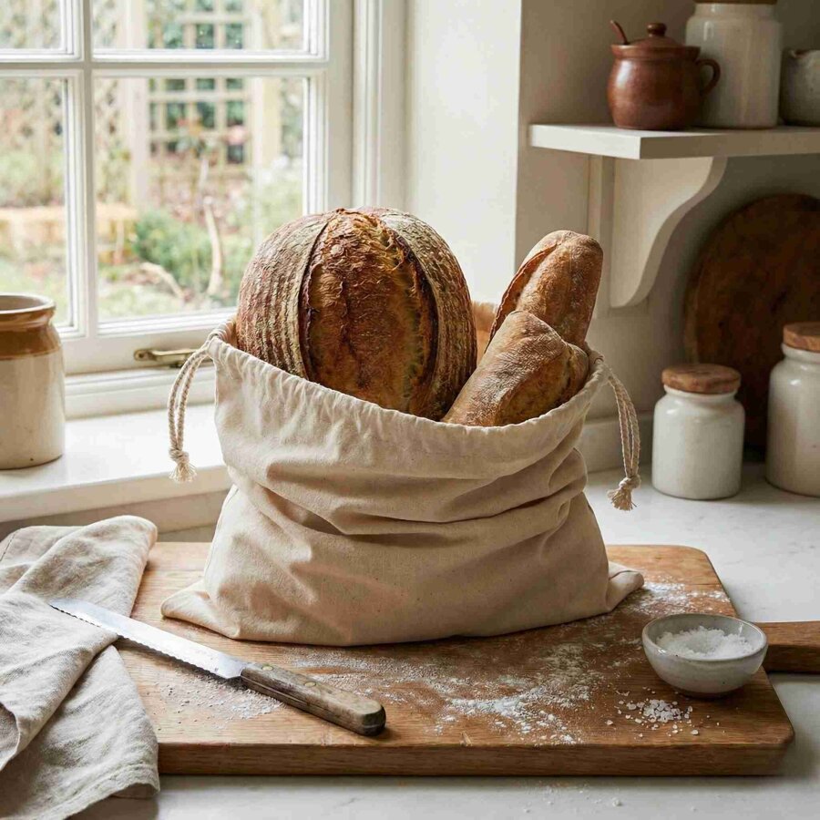 En : 35 cm. Boy :40 cm. Ekmekleri muhafaza etmek için kullanılır. Ekmek hamurlarını sepete dizildikten sonra, bez içine alınarak soğuk mayalamada kullanılır. Yıkanabilir. Hammaddesi %100 pamuktur. Sağlığa uygun ve hijyeniktir. Hamur mayalarken torbanın içinde dinlendirebilirsiniz. Mevcutta olan ekmek ve unlu mamullerinizin tazeliğini koruması için ürünlerinizi bu torbanın içinde muhafaza edebilirsiniz.