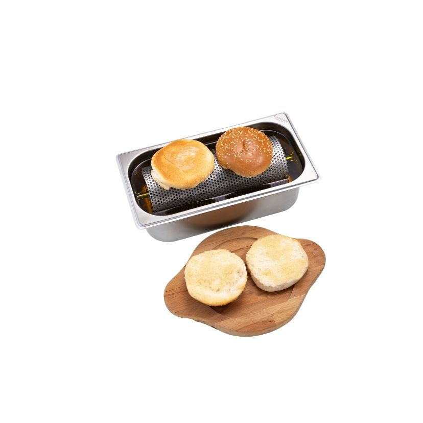 Otel, restoran, kafe, endüstriyel mutfaklar vb. alanlarda kullanılabilen Ekmek Yağlama aparatı, ekmekleri ve tostları lezzetli hale getiren bir yardımcıdır. Ekmek Yağlama aparatı tereyağı, zeytinyağı ve baharatlı soslar da dahil olmak üzere geniş bir ürün yelpazesine sahiptir. Bununla birlikte kullanılan yağ ve sos miktarı üzerinde kontrol sağlamaya yardımcı olur. Zaman ve Maliyet Tasarrufu Delikli tambur özelliği sayesinde ekmeklerin üzerine eşit bir şekilde tereyağı sürmesini sağlar ve fazla yağın haznenin dibine düşmesine izin verir. Rahat Kullanım Ekmek, rulo boyunca kayarak kolayca yağlanır. Kolay Temizlik Tüm parçaları bulaşık makinesinde yıkanabilir. Pratik ve Hızlı Ekmek Yağlama, özellikle yoğun servis saatlerinde büyük bir hız kazandırır.