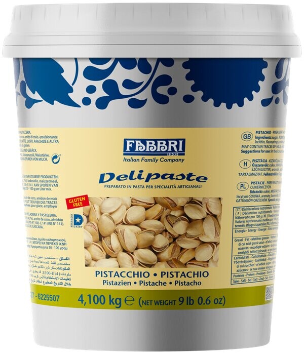 Fabbri Delipaste Antep Fıstıklı Dondurma Konsantresi, dondurma, pastacılık ve tatlı yapımında kullanılan yüksek kaliteli bir aroma bileşenidir. İçeriğinde antep fıstığı ve badem bulunur ve yoğun, doğal bir tat sunar. Parlak yeşil renge sahip bu konsantre, zengin fıstık aromasıyla tatlılara benzersiz bir lezzet katar.