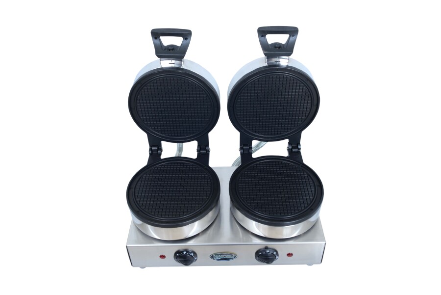 Yüksek verimlilik gerektiren profesyonel mutfaklar için tasarlanan çift pişirme yüzeyli kornet makinesi, hızlı ve tutarlı sonuçlar sunar. Kompakt yapısına rağmen aynı anda iki ürün pişirme imkânı sunarak zamandan tasarruf sağlar. Özel yapışmaz Teflon kaplaması ve otomatik termostatı sayesinde hem kullanım kolaylığı hem de enerji verimliliği sunar.