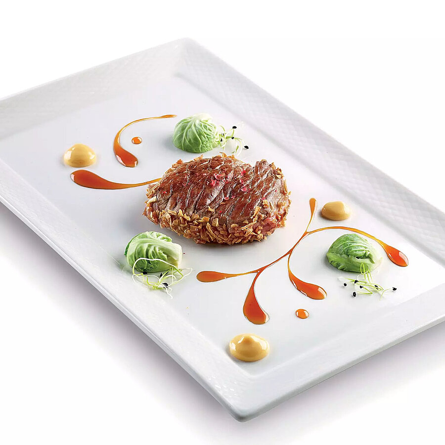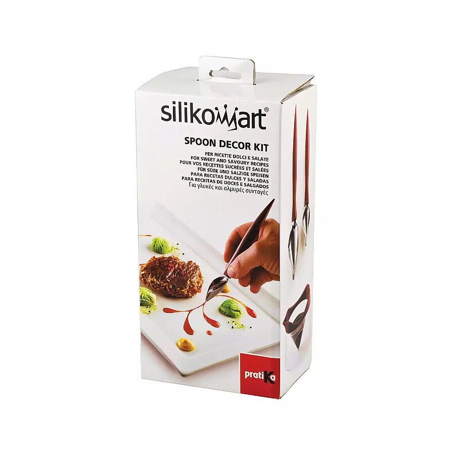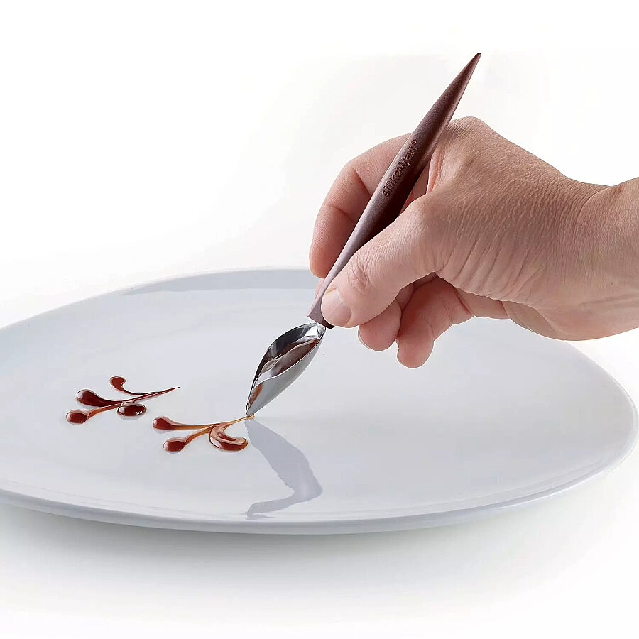 Spoon Cup kabından Spoon Decor ile az miktarda sos alın ve kaşığın ucunu tabağınıza dikey olarak yerleştirin, ucu porselen üzerinde gezdirin. Böylece düzgün ve belirgin bir çizgi elde edebilirsiniz. Renk çizgilerini üst üste bindirebilir ve noktalama işaretleriyle karıştırabilirsiniz. Şunlarla süsleme veya imza yapmak için idealdir: tuzlu sos, domates sosu, aromatik sirke, sebze veya balık karışımı, püre, Hollanda sosu, meyve püresi, çikolata sosu, karamel, İngiliz kreması