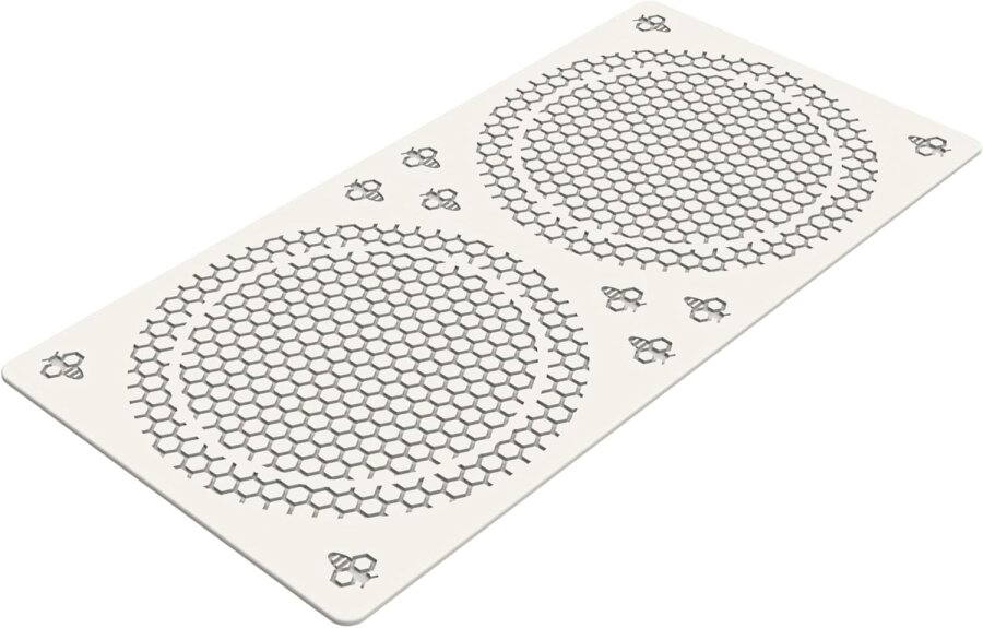 Silikomart BEE Silikon Kalıp ile tatlılarınıza doğal ve zarif bir dokunuş katın . Bu silikon mat, bir arı kovanının altıgen hücrelerini aslına sadık kalarak yeniden üretir ve zarif ve benzersiz süslemeler için küçük arılar içerir. Çok yönlü bu kalıp, hem dondurma hem de pasta tarifleri için uygundur ve kreasyonlarınızı zarif ve profesyonel dokunuşlarla zenginleştirmenize olanak tanır. Başlıca özellikleri: Benzersiz ve doğal tasarım : Altıgen petekler ve küçük arılar, doğa veya bal temaları için mükemmel. Yüksek Kaliteli Malzeme : %100 gıda sınıfı platin silikon, kolay kalıptan çıkarma için dayanıklı ve esnektir. Çok yönlü : Çikolata süslemeleri, kremalar veya çıtır tabanlar için kullanılabilir. Genişletilmiş ısı direnci : -60°C ile +230°C arasındaki sıcaklıklara dayanıklıdır, dondurucu, fırın ve mikrodalgada kullanıma uygundur.