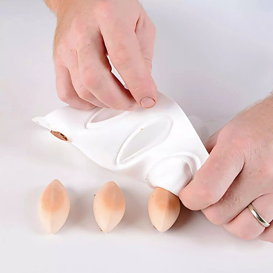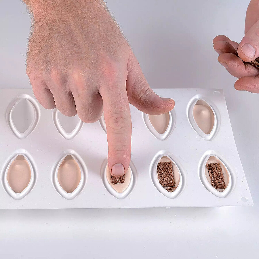 Mükemmel, üç boyutlu tatlı veya tuzlu quenelle'ler yapmak için Silikomart Professional, estetik ve işlevselliği birleştiren bir ürün sunmak üzere en ince ayrıntısına kadar tasarlanmış bu zarif kalıbı sunuyor. Üç boyutluluk, kalıbın iç kısmındaki kenar sayesinde mümkün oluyor ve bu da hazırlanan ürünlerin tabanına yuvarlak bir şekil veriyor. Bu kalıbın -60°C ile +230°C arasındaki sıcaklıklara dayanıklılığı, Quenelle'i fırın ürünlerinin yanı sıra dondurma veya semifreddo versiyonları için de ideal, laboratuvarda olmazsa olmaz bir kalıp haline getiriyor.