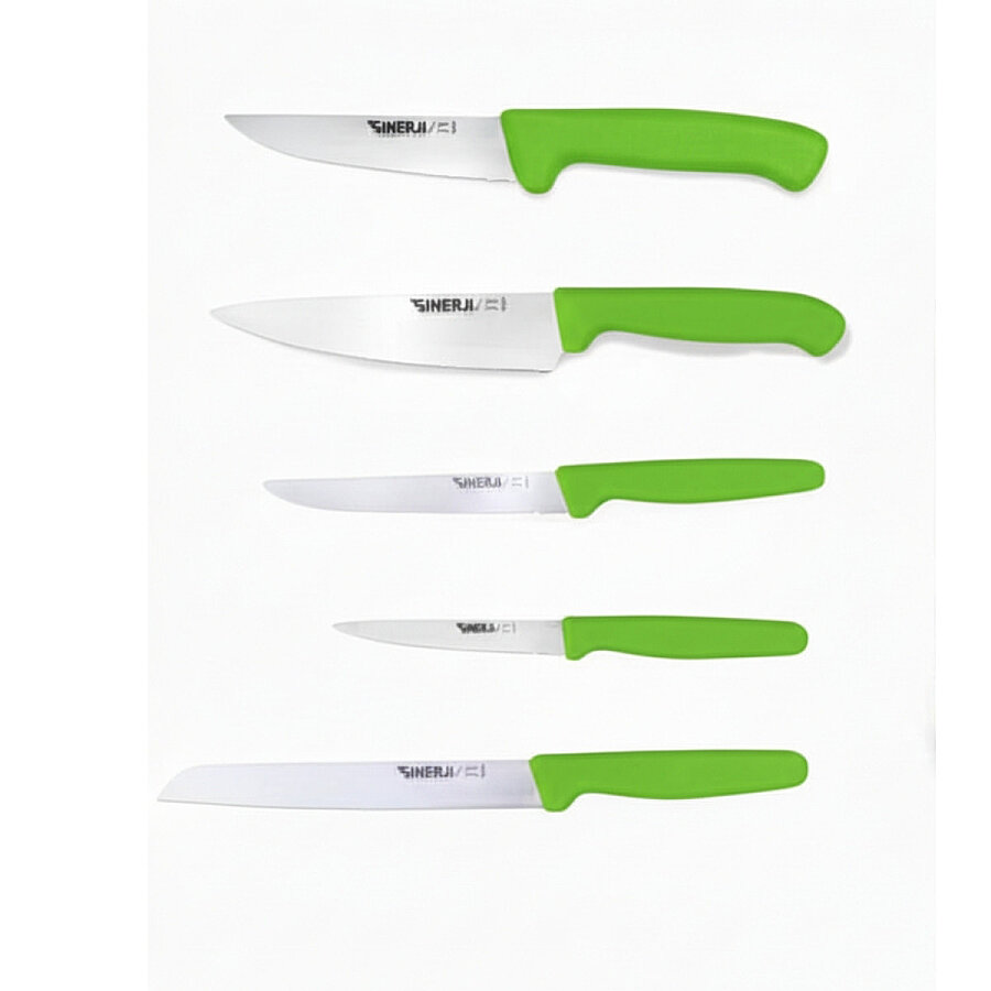 Silver Home Serisi Bıçak Seti 5'li ile mutfağınızda profesyonel dokunuşu her gün hissedin. Kasap bıçağı, şef bıçağı, mutfak bıçağı, sebze bıçağı ve ekmek bıçağı ihtiyacınızı tek sette buluşturan Silver Home Serisi; dilimleme, doğrama ve ekmek kesimi için dengeli kullanım sunar. Dayanıklı yapısı ve pratik boyutları sayesinde yemek hazırlığını daha hızlı, daha kontrollü ve daha keyifli hale getirir.