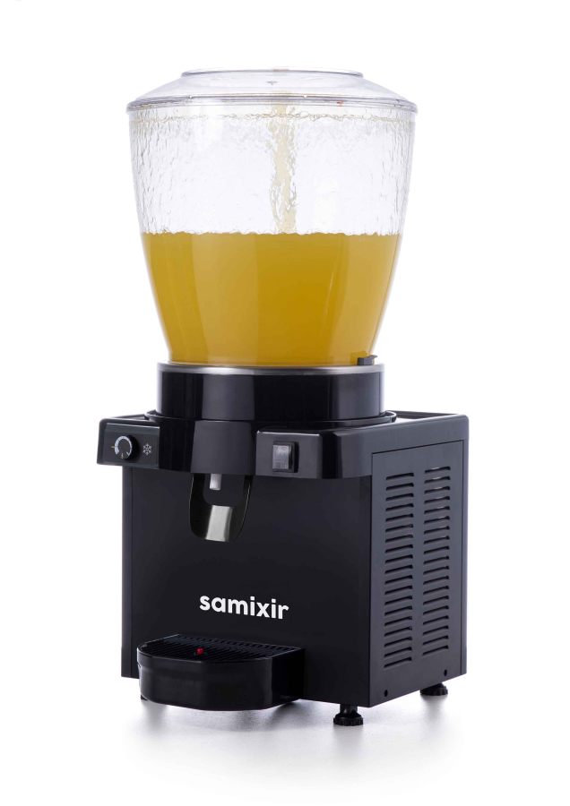 Panoramik S22 22 L panoramik, fıskiyeli soğuk içecek dispenseri Doğal parçacıksız meyve ve şalgam sularının soğutulması ve dağıtılması için tasarlanmış tezgah üstü soğuk içecek dispenseri  Manyetik fıskiyeli karıştırma sistemi sayesinde; özellikle parçacıksız meyve sularının, şalgamın soğutulması ve dağıtılması için tasarlanmış tezgah üstü dispenser. Geniş soğutma tabanı sayesinde içecekler daha hızlı ve son damlasına kadar eşit olarak soğur, Bu sayede klasik ürünlere göre %50’ye varan enerji tasarrufu sağlar. Pratik musluk sistemi; tek el kullanılarak rahatça içecek alabilmeyi sağlar. Geniş musluk hortumu hızlı dolum sağlar ve kolaylıkla sökülüp temizlenebilir. Manyetik fıskiye sistemi sayesinde hazne içinde bulunan içeceğin alt motor bölümüne sızma riski ortadan kalkar, bu sayede motorun ömrü uzar. Fıskiyenin eşit dağıtım özelliği sayesinde içecek azalsa bile iştah açıcı görsellik değişmez. Mükemmel temizlik ve hijyen için içecek ile temas eden tüm parçalara kolayca ulaşılır ve hızlı bir şekilde temizlenebilir. Polikarbonat hazne darbeye dayanıklı ve gıda kullanımına uygundur. Küçük ve orta ölçekli işletmeler için uygun çözümdür. Parçacıklı içeceklere uygun değildir. Damlalıkta bulunan seviye göstergesi sayesinde atık suyun taşmadan önce boşaltılması gerektiği rahatlıkla fark edilir. Ağırlık ve Ölçüler Makine Koli Ağırlık 20,6 kg 22,2 kg Genişlik 350 mm 405 mm Derinlik 405 mm 430 mm Yükseklik 760 mm 795 mm *damlalık dahil Teknik Detaylar Kapasite 22 Litre ( 1 x 22 L ) Soğutucu Gaz R134A / R290 Sıcaklık Aralığı +3˚C... +10 ˚C Soğutma Gücü 500W Güç 250W Akım 1,38 A Besleme Voltajı 220-240 V 50 Hz