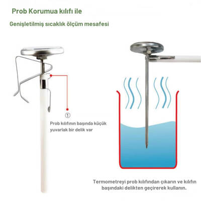 Prob ucu doğrudan sıvıya veya gıdaya batırılarak sıcaklık ölçümü yapılabilir. Kullanımı son derece basittir ve anında okuma sağlar. Süt, kahve, çay gibi içeceklerin yanı sıra çeşitli gıda ürünlerinin sıcaklığını ölçmek için idealdir.