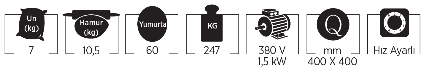 Aparat değiştirerek ister 40 litre, ister 30 litre mikser olarak olarak kullanabilirsiniz. Pasta ve unlu mamullerin üretiminde, çırpma, karma ve yoğurma amaçlıdır. Kazan sabitleme ahtapot kolludur. 3 farklı karıştırma aparatı vardır. Aparata göre hız kontrollü ve zaman ayarlıdır. Yüksek performanslıdır. Kazan içi aydınlatmalıdır. Dijital kontrol panellidir. Kolay kullanımlıdır. Planet sistemdir. Sessiz çalışır. 380 Volt 50 Hz. Şık, estetik görünümlüdür. 24 V kumanda panel. CE standartlarına uygundur. Makine ile birlikte TAŞIMA ARABASI verilir. İmalat ve montaj hatalarına Ürün Kodu : PMX 04 karşı 2 yıl garantilidir.